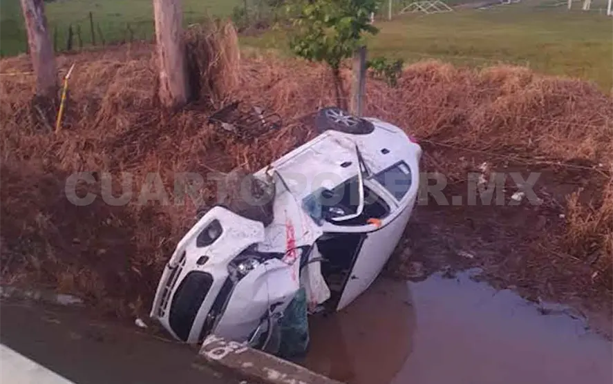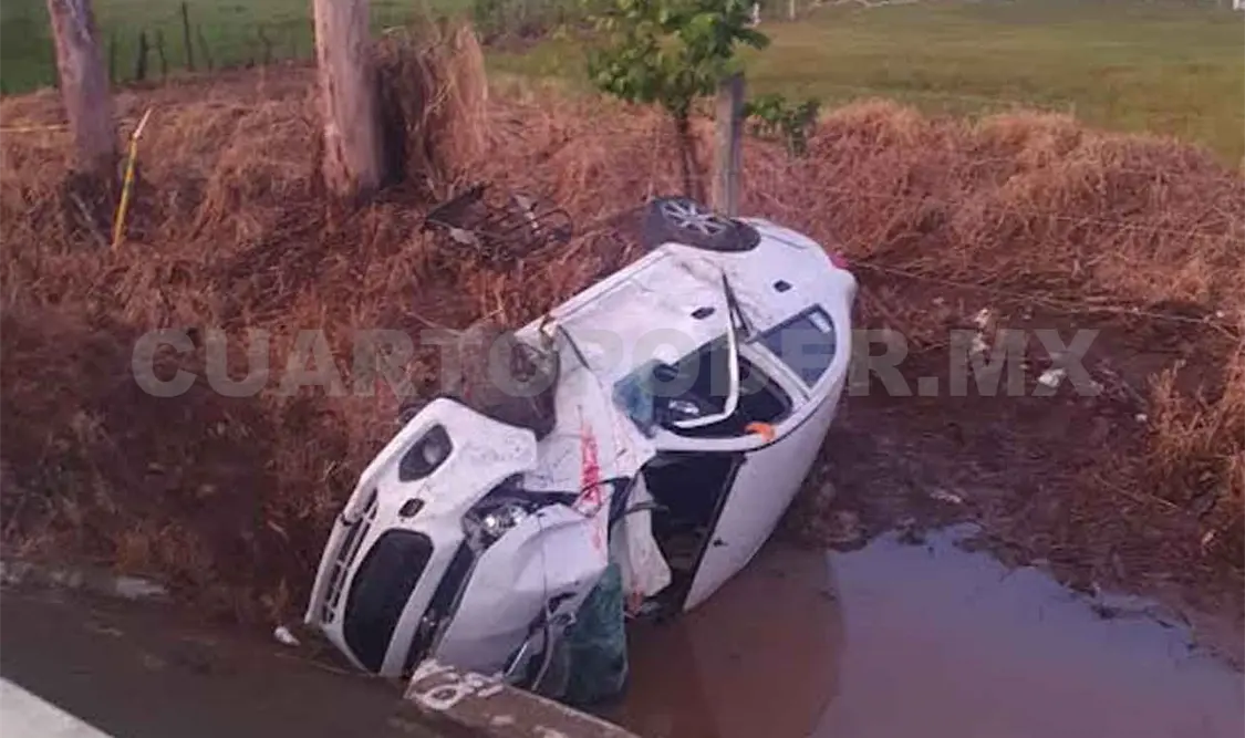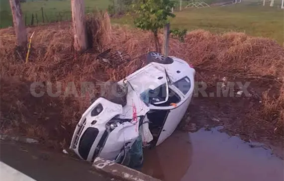 Milagrosamente resultó sólo con golpes leves el conductor de un vehículo que se salió de la carretera y terminó volcado en un dren pluvial sobre el tramo carretero Tapachula-Huixtla.