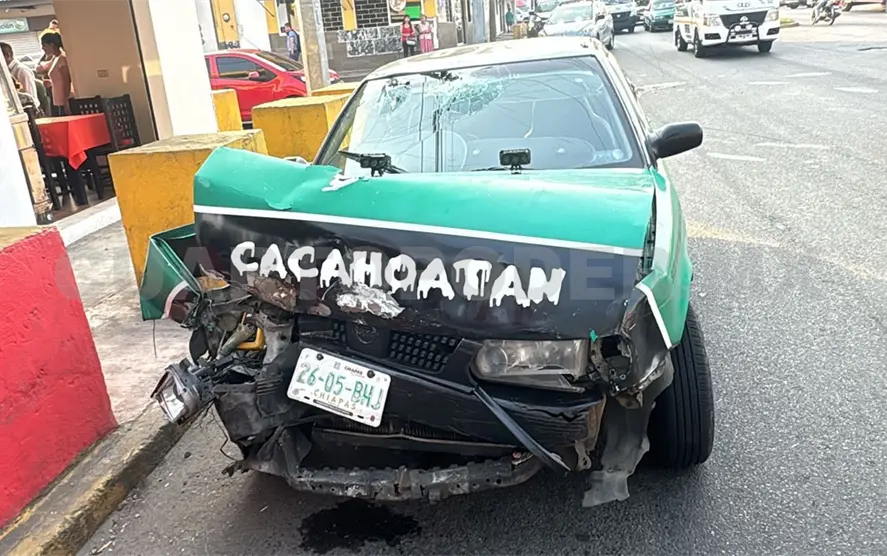 El reporte indicaba que una camioneta familiar se desplazaba de norte a sur sobre la 15.ª Norte y el taxi de la ruta Cacahoatán-Tapachula, de poniente a oriente sobre la 17.ª Oriente, pero al llegar a la esquina uno de ellos no respetó el semáforo y se estrellaron.