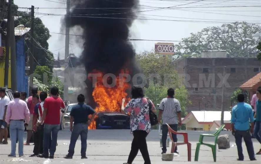 Le prendieron fuego. Al lado había una camioneta negra, marca Dodge tipo Avenger. El fuego estaba por alcanzarla. El dueño, al percatarse, corrió y la movió. Los profesores no le impidieron llevarse su auto.