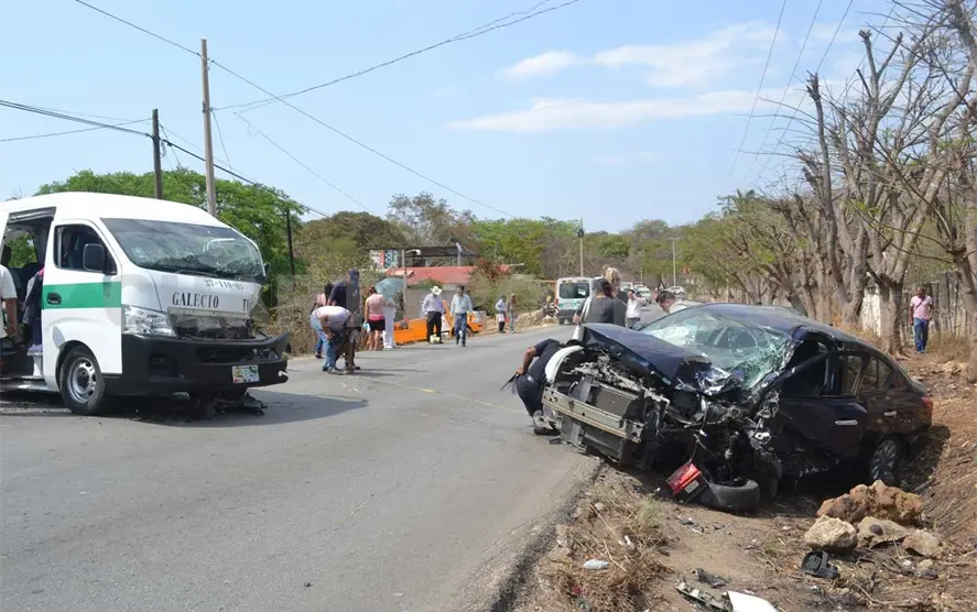 Un total de 12 personas lesionadas dejó como saldo un accidente frontal entre un colectivo y un automóvil particular durante la tarde del lunes en el tramo carretero Tuxtla-Sucihiapa, concretamente a la altura de la Quinta Primavera.