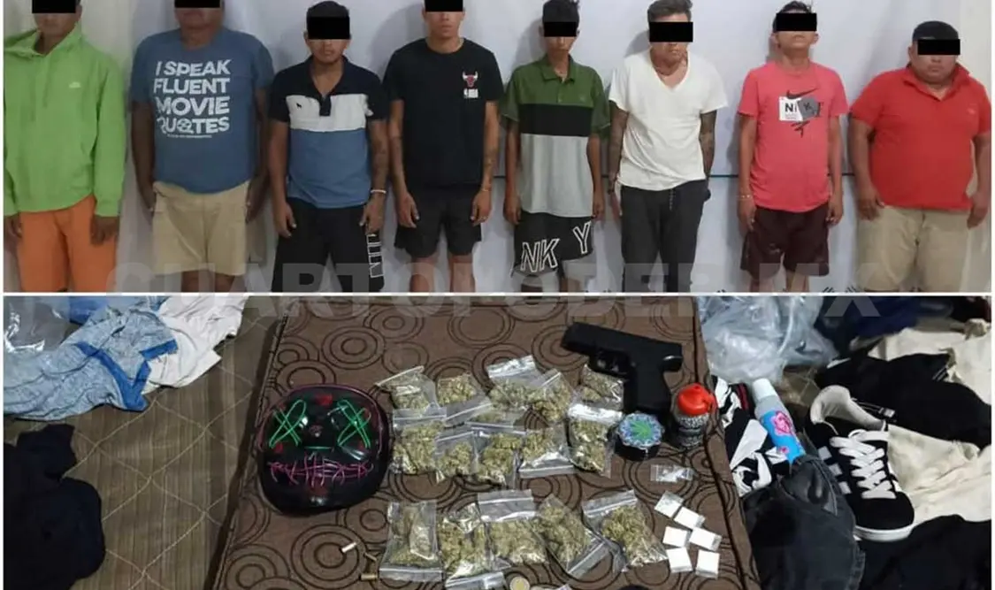Como resultado, los elementos del orden detuvieron a Ervin “N”, Eder “N”, Héctor “N”, Elías “N”, Humberto “N”, Alejandro “N”, Christian “N”, Jesús “N”, Romeo “N”, Vicente “N” y Paola “N”, como presuntos responsables del delito contra la salud. Les aseguraron seis bolsitas con marihuana, dos con crack, seis con cristal, un casquillo percutido del calibre .9 mm, una pistola deportiva de balines y tres motocicletas.
