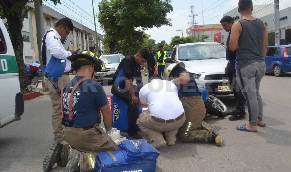 Paramédicos de Protección Civil y Cuerpo de Bomberos acudieron para la valoración del repartidor quien presentaba excoriaciones y golpes pero no fue necesario trasladarlo a un hospital, los oficiales de vialidad se hicieron cargo del asunto.