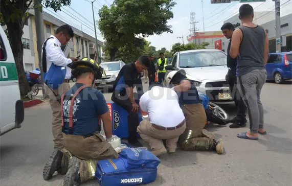 Un despistado motorepartidor fue embestido por un vehículo particular ayer por la tarde en la entrada a la colonia Residencial La Hacienda, paramédicos y autoridades llegaron para tomar conocimiento de lo ocurrido.