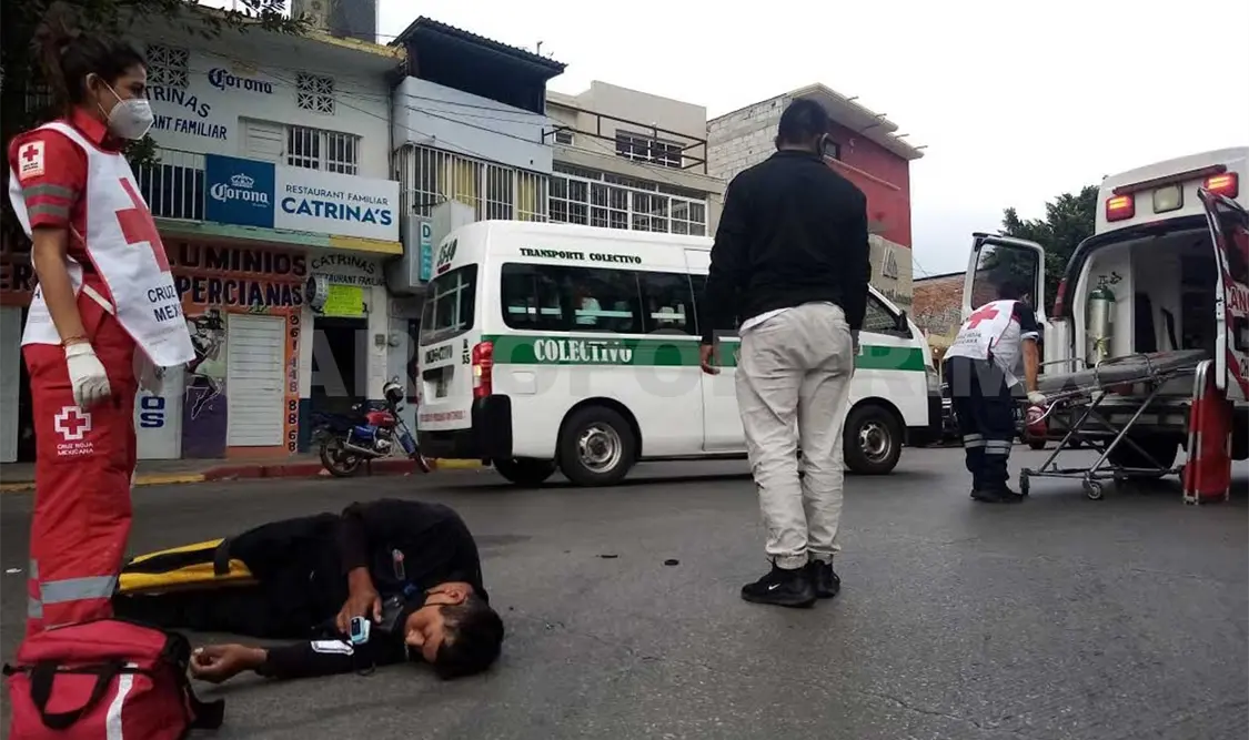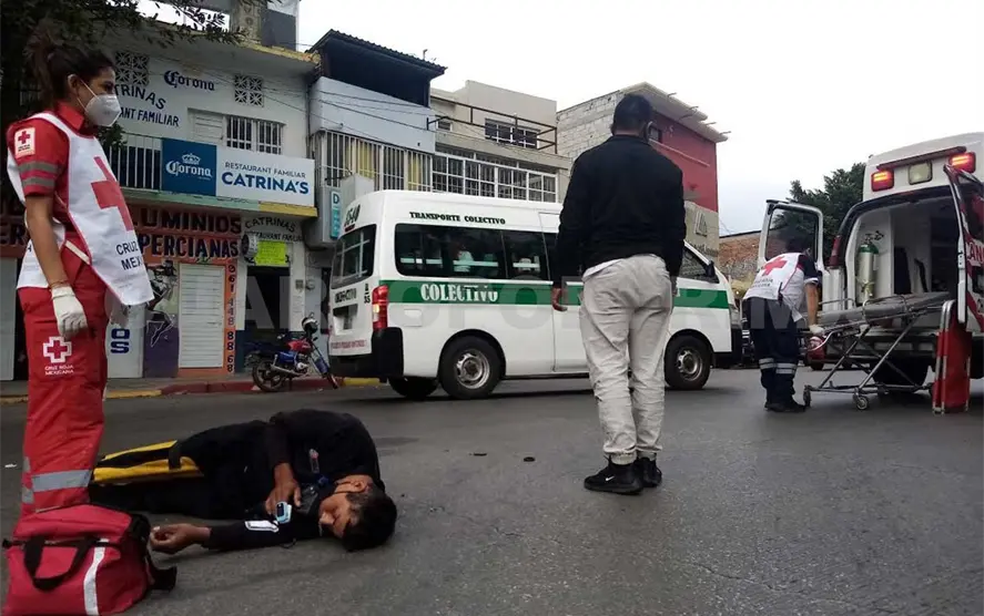 En el crucero, a la altura de la 8ª Oriente, se dio el percance y el sujeto quedó sobre el pavimento con serias lesiones en su cuerpo, por lo que los agente de Tránsito arribaron al lugar y solicitaron una ambulancia.