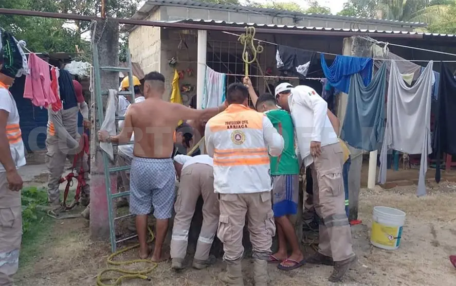 Los gritos de auxilio resonaron alertando a los vecinos y, sobre todo, a su abuelo Marcelo “N”. Sin pensarlo dos veces, Marcelo se lanzó al rescate de su nieto, pero el descenso no fue fácil. En su valiente intento sufrió una lesión en el tobillo izquierdo que le imposibilitó salir del profundo pozo.