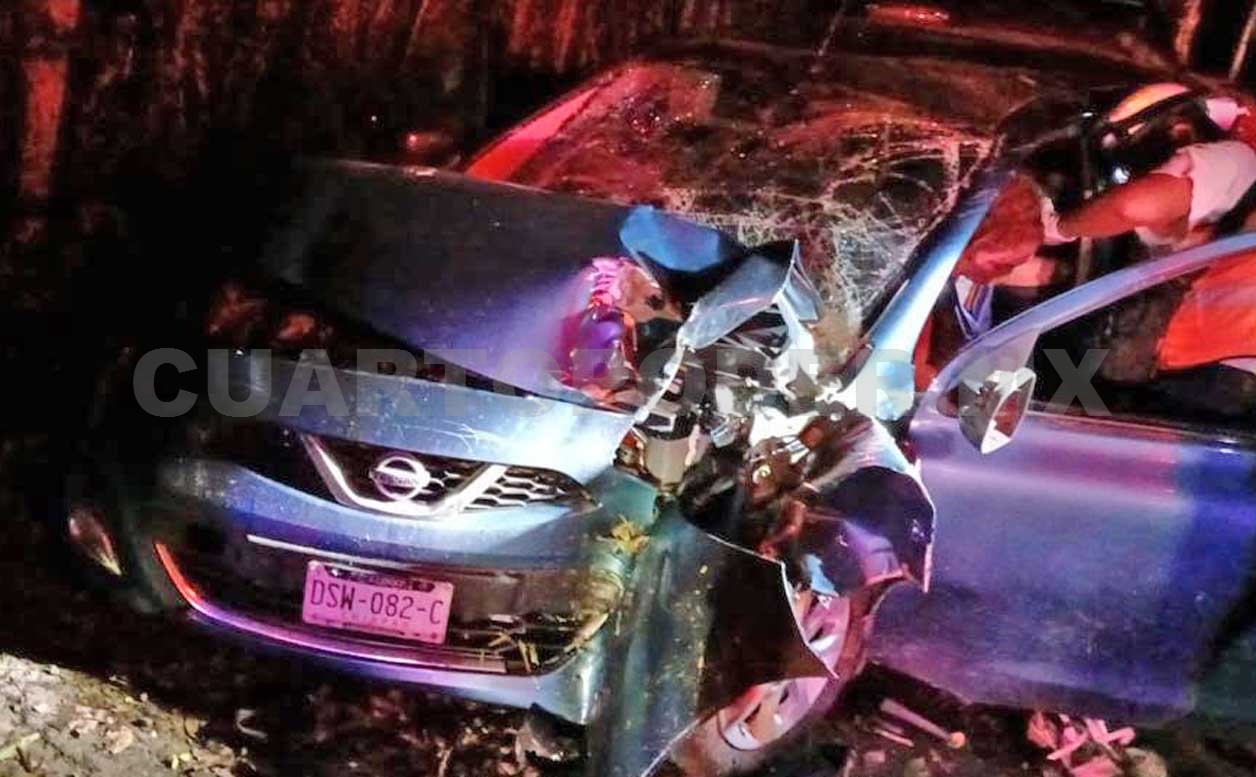 Dos personas fueron rescatadas del interior de un vehículo en el que quedaron atrapadas tras impactarse contra un poste sobre el tramo carretero que va de Tapachula a la 1.ª Sección de La Cebadilla.