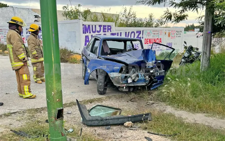 El automóvil acabó con severos daños en la carrocería, principalmente en la parte frontal izquierda y portezuela, terminando atrapado en el interior la persona que manejaba, por lo que testigos reportaron el percance al número de emergencias 9-1-1.