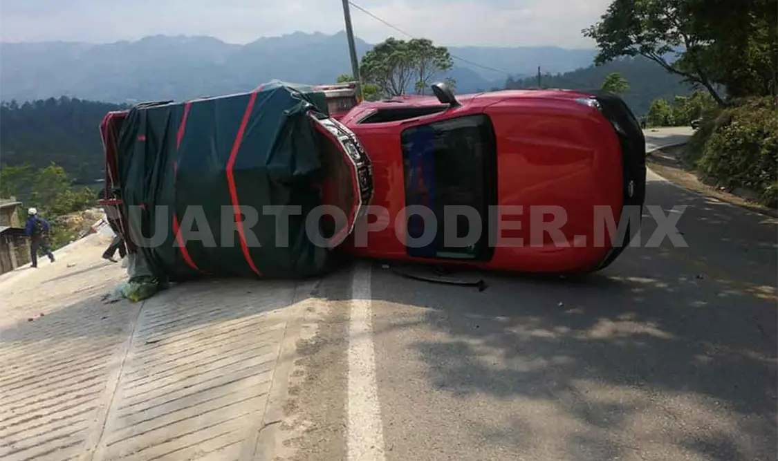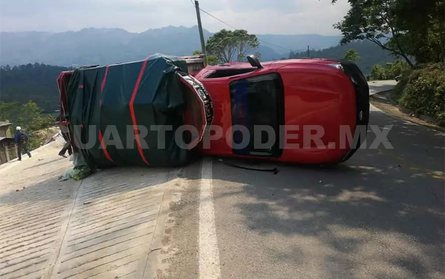 El chofer, cuyos generales se desconocen por su delicado estado de salud, se encontraba atrapado entre los fierros retorcidos de una camioneta Nissan tipo Estaquitas, color rojo y con placas de circulación CW0461A.