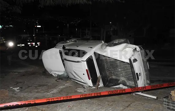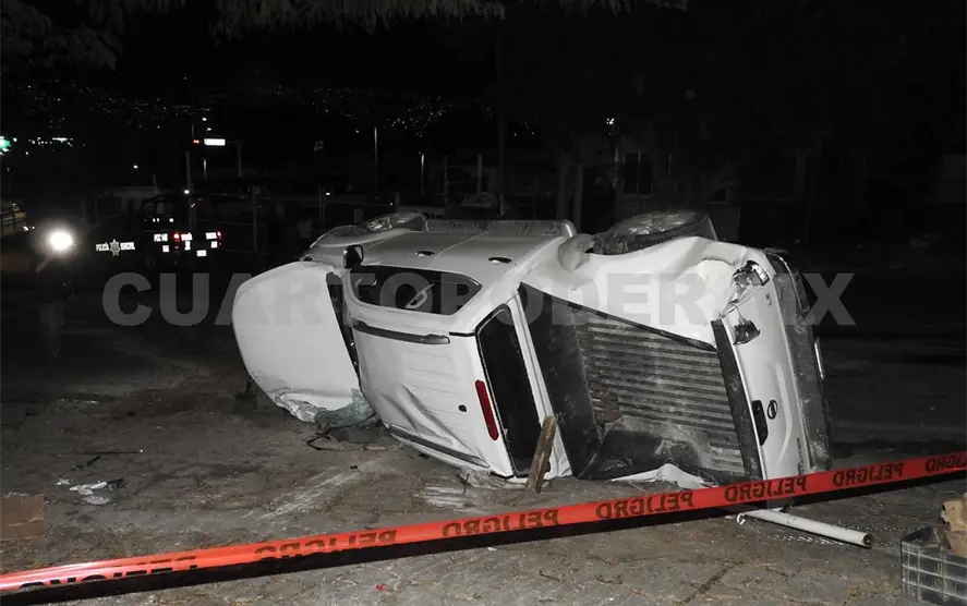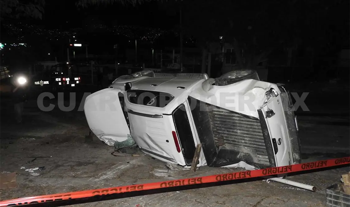 Sin embargo, al incorporarse a la vía que comunica al ejido Copoya, el conductor de la camioneta terminó perdiendo el control y se estrelló contra unos postes de acero que rodeaban el acceso principal al condominio El Pedregal.