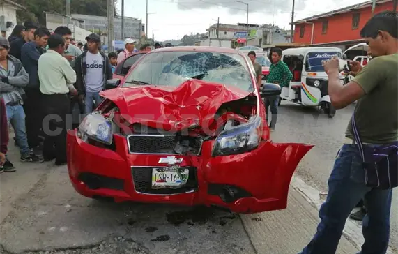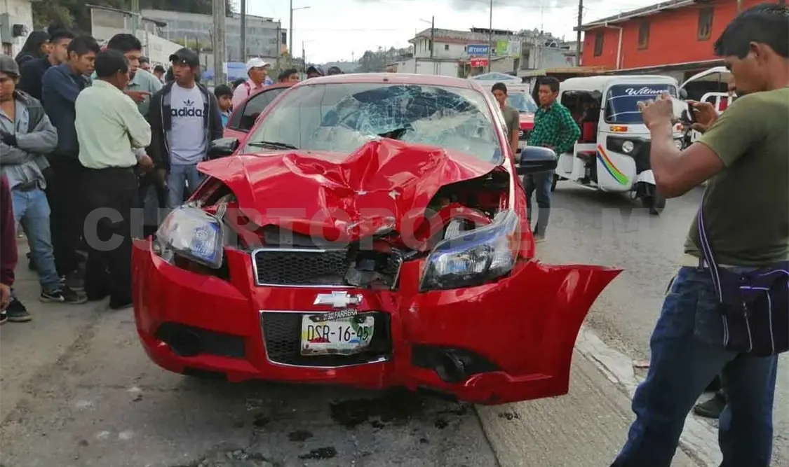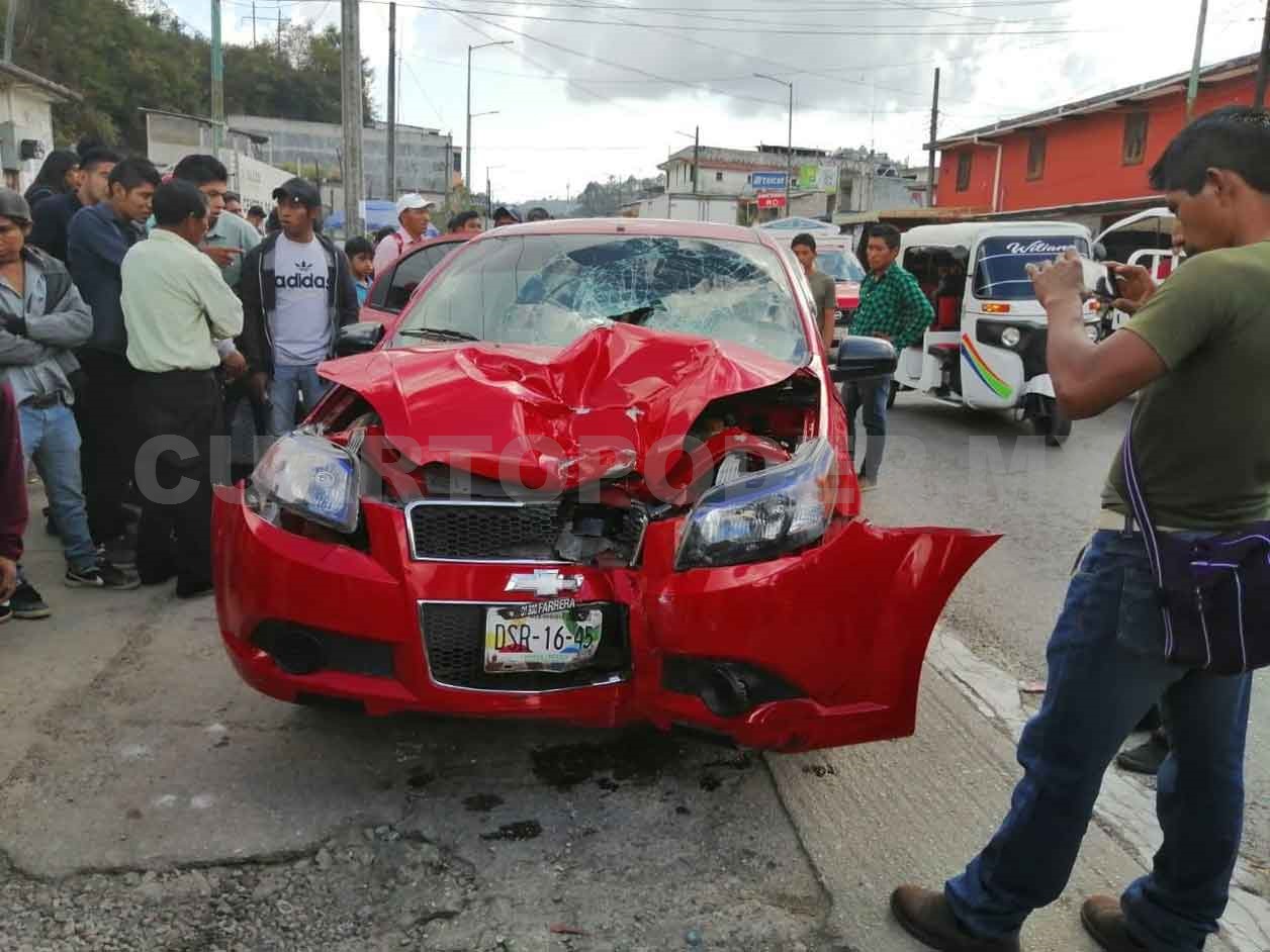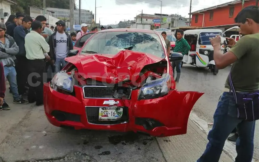 Conducía un automóvil sedán marca Chevrolet tipo Aveo, color rojo, con placas de circulación DSR1645 del estado de Chiapas. Al perder el control de la unidad a la altura del arco de bienvenida del municipio embistió a la moto.