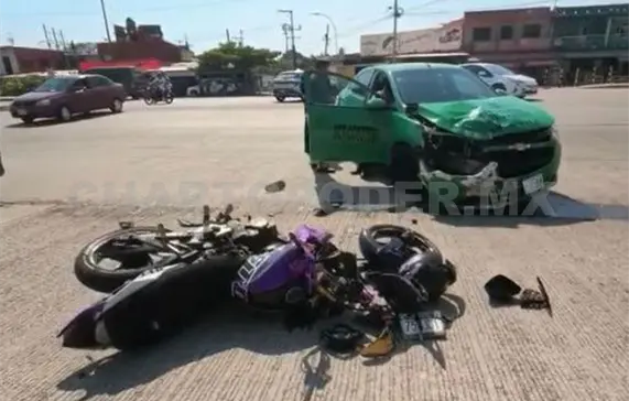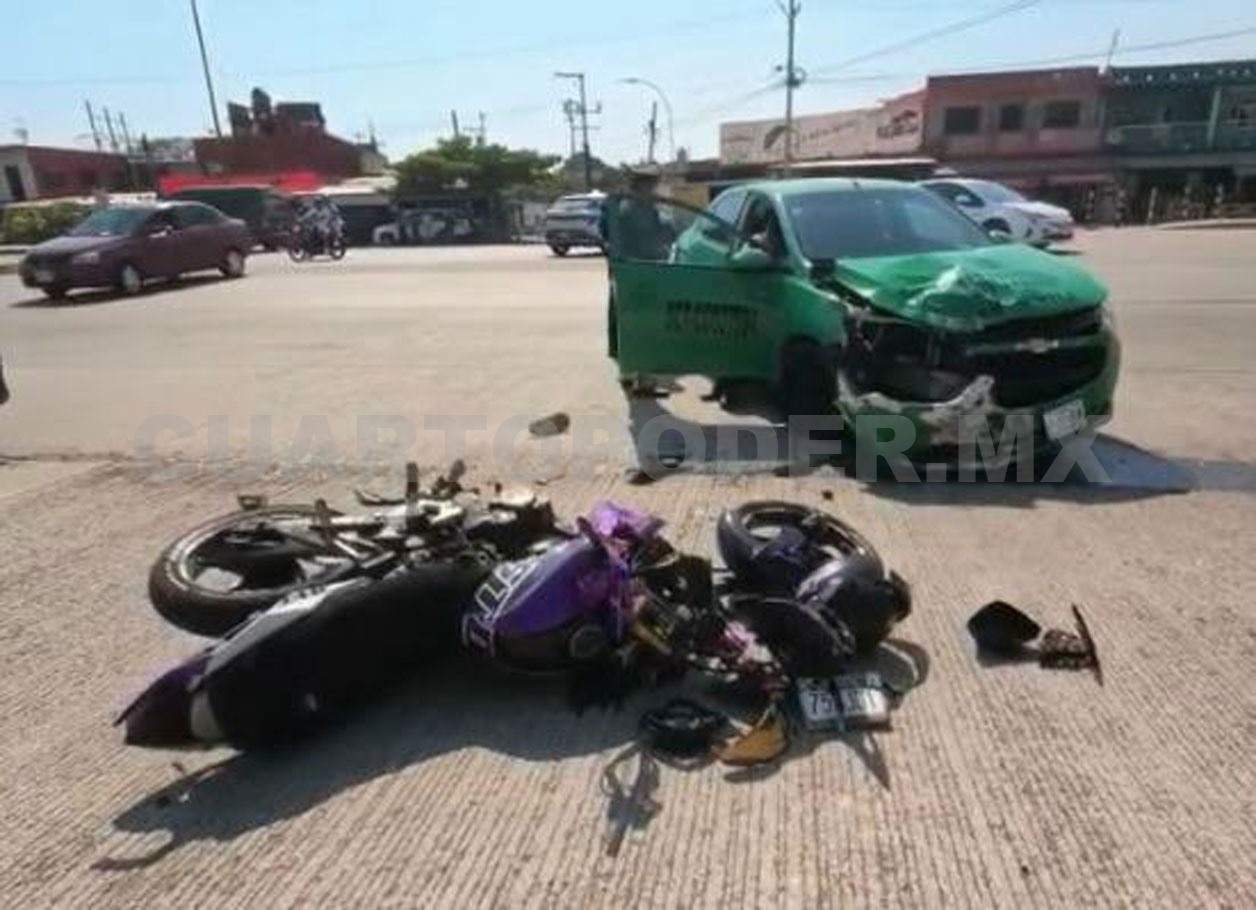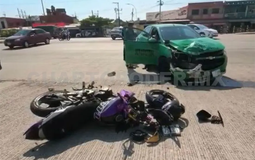 Un joven resultó gravemente lesionado luego de un brutal impacto contra un taxi de ruta foránea en el crucero del libramiento Sur y la carretera hacia el ejido Raymundo Enríquez, al sur de Tapachula.