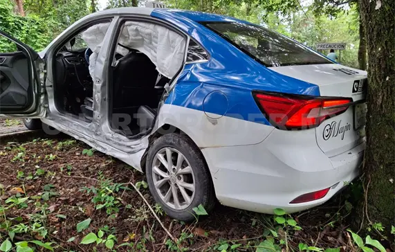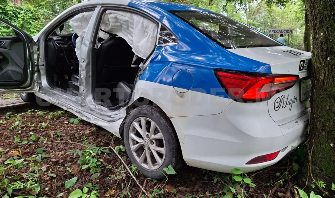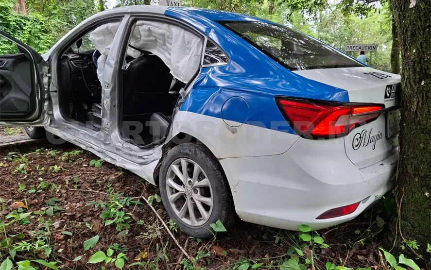 La carretera ramal a la Zona Arqueológica en el kilómetro 2, fue el escenario del accidente de tránsito que tuvo como involucrados al chofer de un taxi del sitio Taxistas Unidos de Palenque, marcado con el número económico 219, y un Audi, color blanco.