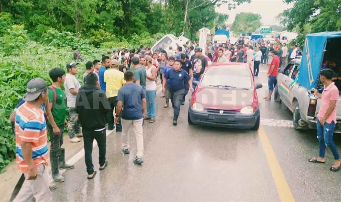 El percance se registró a la altura del kilómetro 72 de la carretera federal Palenque-Ocosingo, en la entrada del ejido Tronconada, donde había una Urvan de color blanco, con placas de circulación DLS-782-D, cuyo chofer fue identificado como Pedro Hernández López, quien quedó prensado dentro del vehículo.