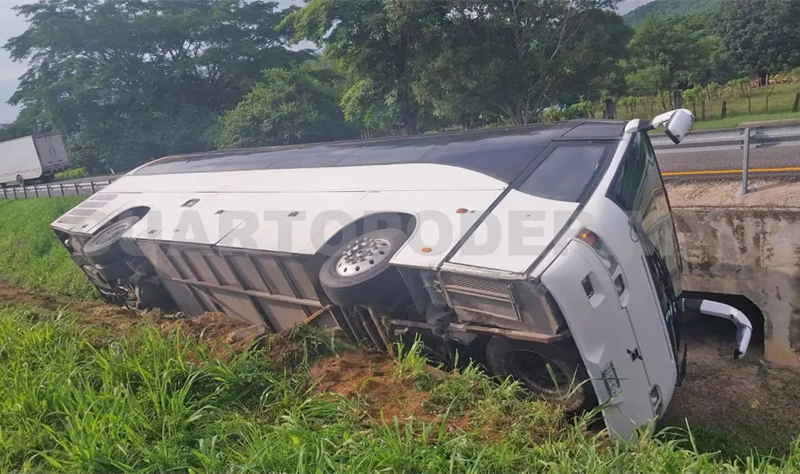 En el sitio únicamente quedó el chofer y el camión de pasajeros a petición de la Guardia Nacional, para deslindar responsabilidades y en lo que el vehículo era rescatado.