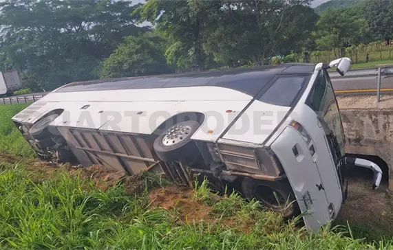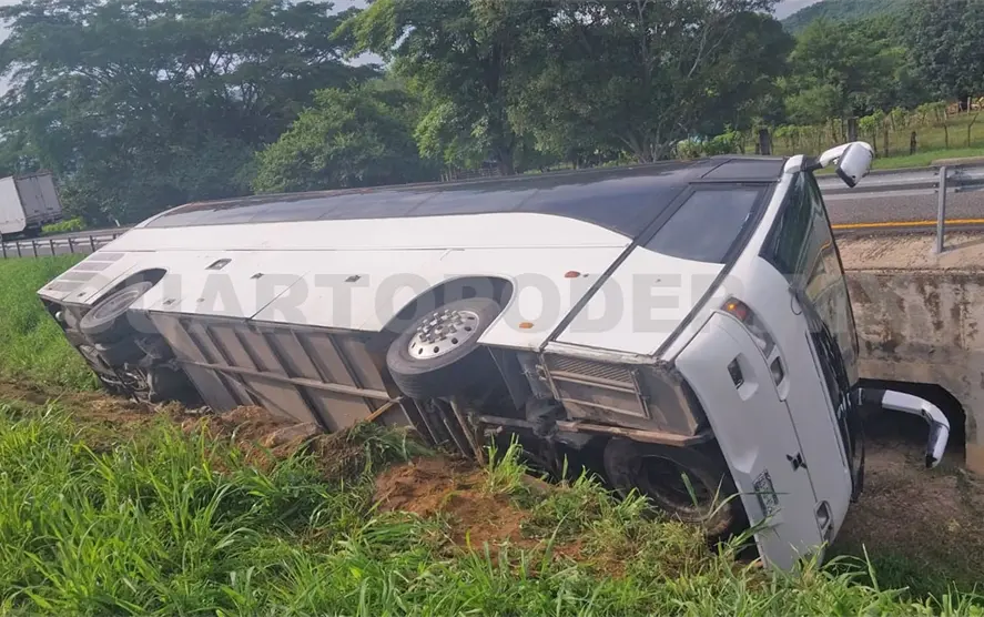 Un autobús que transitaba con dirección a la frontera Sur salió de la vía y al volcar dejó a por lo menos 15 personas con crisis nerviosa y lesiones leves, entre ellos algunos menores de edad, esto durante la tarde del lunes en el municipio de Tonalá.
