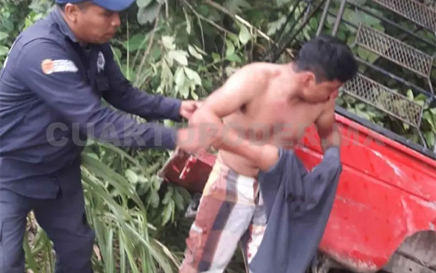 Los uniformados auxiliaron al conductor de una camioneta marca Nissan tipo NP300, doble cabina que resultó con golpes contusos y lesiones, por lo que fue trasladado al Hospital Básico Comunitario en el ejido Santa María.