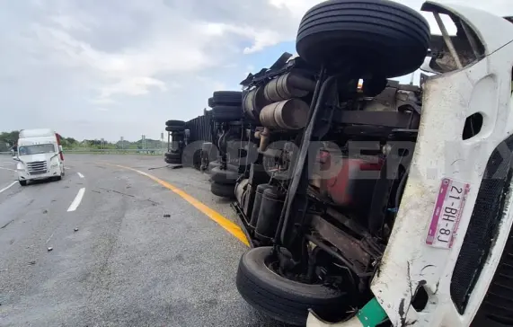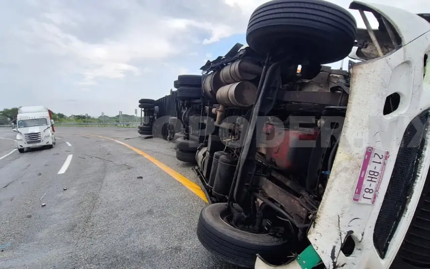 El tractocamión había partido desde la zona de la frontera sur con rumbo al centro del país, cuando en circunstancias aún bajo investigación, el conductor no logró mantener el control del volante, provocando que el vehículo se recostara sobre uno de sus costados.