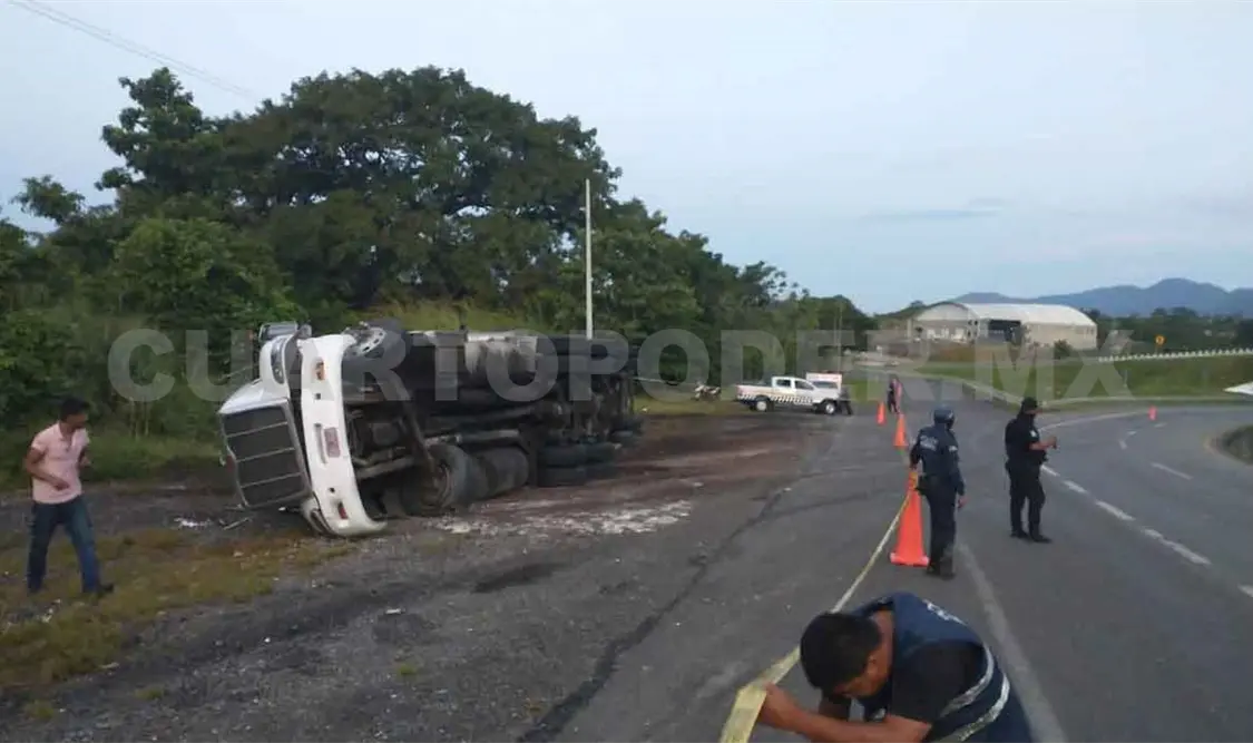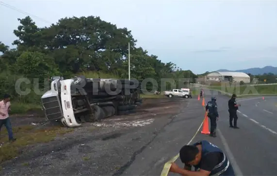 El presunto estallido de uno de los neumáticos fue la causa de la volcadura de un tráiler en la denominada Curva del Diablo, en el tramo carretero Huixtla-Tapachula.