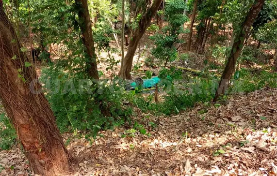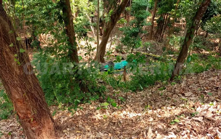 Se dijo que la unidad dio varias vueltas hasta quedar metros fuera del camino en un barranco entre árboles, con las llantas hacia arriba.
