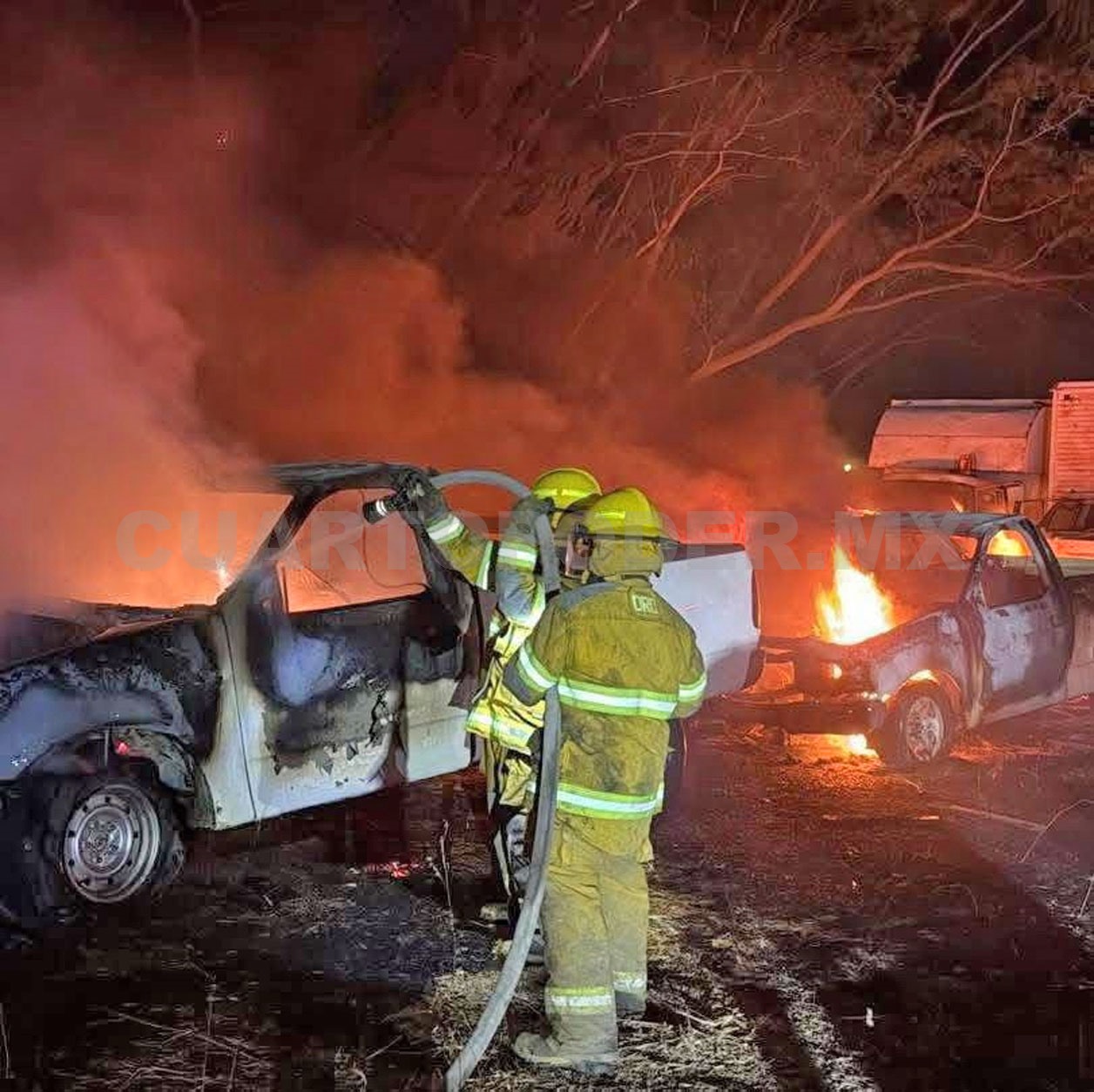 Al arribar al lugar de los hechos, brigadas de Protección Civil (PC) municipal, el Heroico Cuerpo de Bomberos y personal del Escuadrón de Respuesta Inmediata (ERI), comenzaron de inmediato las labores para contener el avance del fuego, el cual ya había alcanzado varios automóviles.