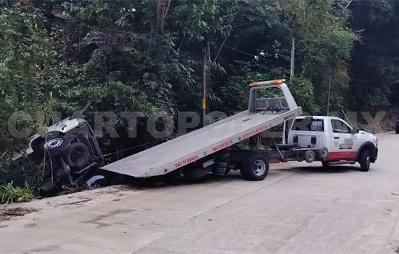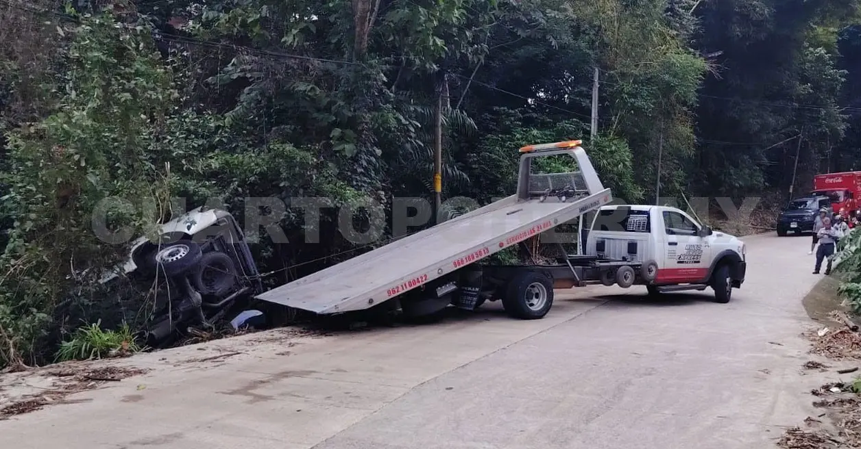 La unidad quedó a punto de irse al fondo de un barranco de varios metros de profundidad, pero los árboles lo impidieron, aunque tuvo daños materiales valuados en varios miles de pesos.