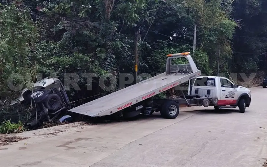 Con el apoyo de una grúa, la unidad fue sacada del sitio en donde quedó volcada para ser llevada a un corralón oficial.