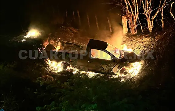 Fue ayer en las primeras horas cerca de las 04:00 horas que una camioneta, al parecer Chevrolet Tornado, abandonó la carretera cayendo en un barranco luego de que el chofer perdiera el control del volante. Lo más preocupante fue cuando observó el fuego emanar del motor.