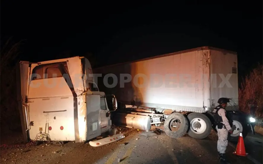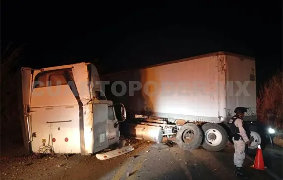 Trascendió que usuarios que iban por el tramo carretero Arriaga-Ocozocoautla reportaron un tráiler con doble caja accidentado a la altura del kilómetro 22, cuya cabina estaba desprendida del chasis entre el remolque, y su operador posiblemente lesionado.