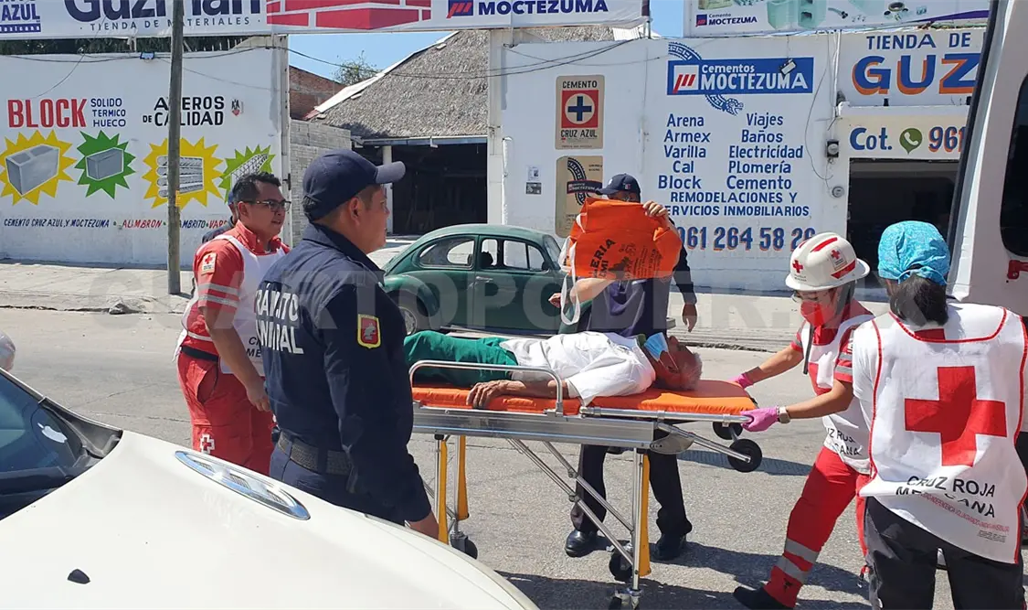 Un adulto mayor fue impactado por un transporte público en modalidad de taxi, luego de que este pusiera reversa y lo embistiera. El accidente ocurrió en el barrio Santa Cruz de la capital Tuxtla Gutiérrez, el mediodía del lunes.