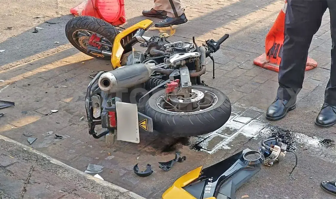 Se dijo que Alex "N" (33 años) se desplazaba en una motocicleta de sur a norte sobre la Central Norte y al intentar incorporarse hacia la 5.ª calle Poniente realizó una maniobra sin al parecer respetar la luz roja del semáforo.