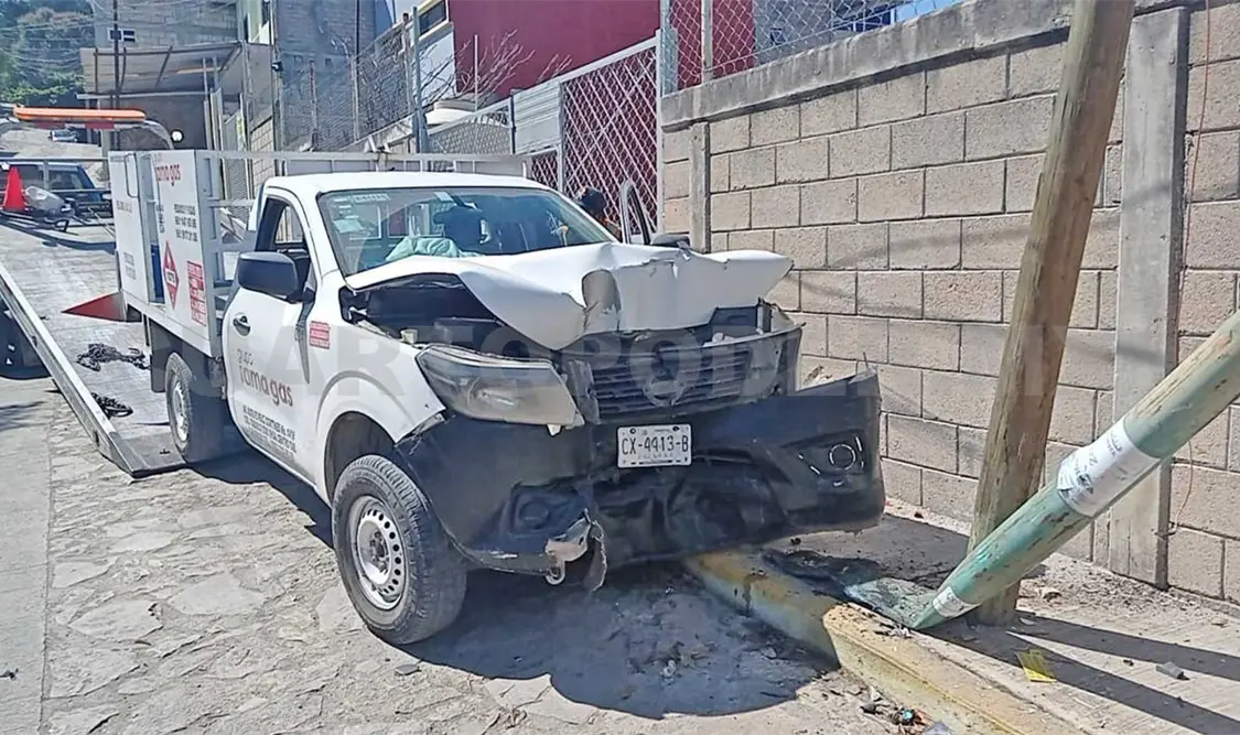 Ahí se informó que la unidad gasera tuvo una falla mecánica y derivado de esto se enfiló contra un poste de luz.