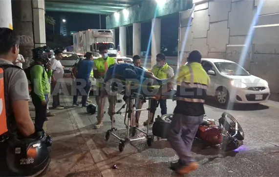 Un motociclista terminó herido de gravedad al estrellarse contra el muro de contención del puente El Trébol, ubicado sobre la vía Tuxtla Gutiérrez-Chiapa de Corzo, a la altura del parque Chiapasiónate.