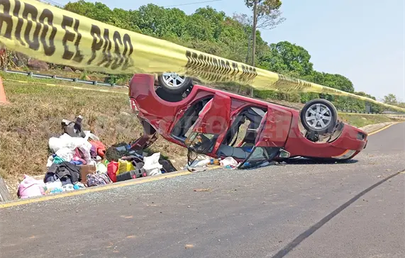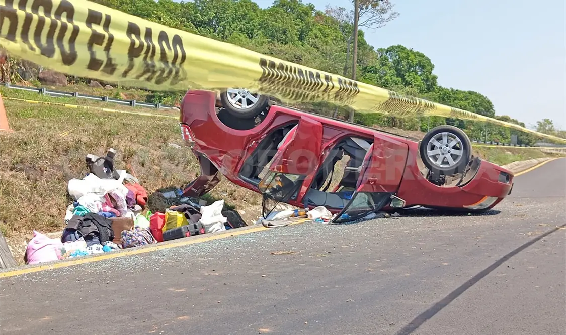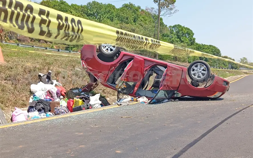 Un Nissan de color guinda, con placas del Estado de México, se desplazaba sobre el libramiento de Huixtla y al llegar a la curva el conductor perdió el control del volante, chocando contra el muro de contención y terminó volcado.