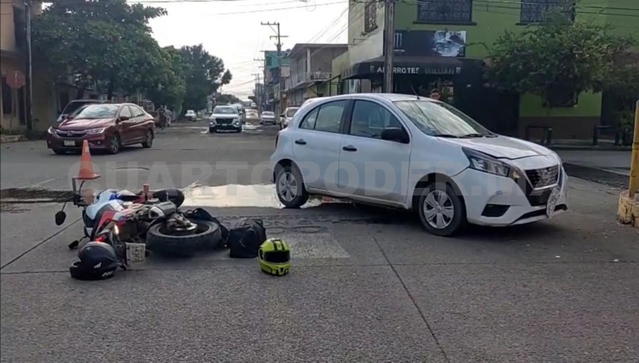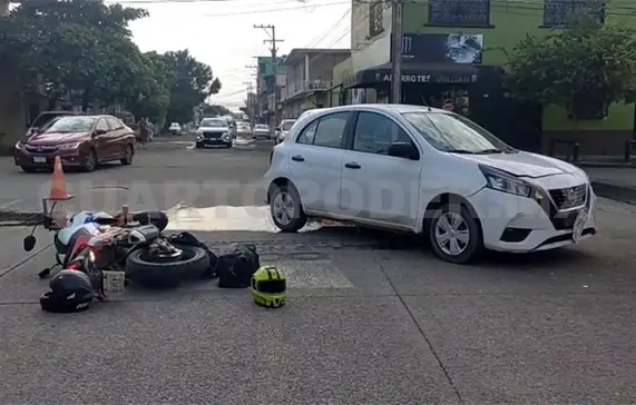 Fue en la esquina de la 3.ª avenida Norte y 13.ª calle Oriente en donde ocurrió el percance, en el que se vieron involucrados una motocicleta y un automóvil Nissan March, ambos de color blanco.