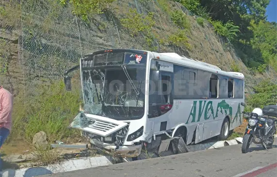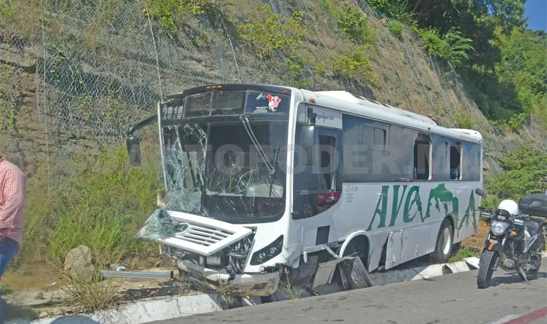 En su loca carrera el autobús se estrelló de frente contra el paredón de un cerro, avanzó unos metros hasta permanecer estático. Se mencionó que en la unidad viajaban al menos 15 personas, entre ellos seis niños.