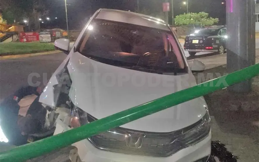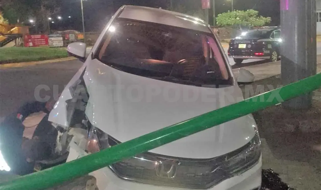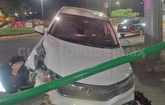 El percance fue registrado alrededor de las 04:25 horas, cuando una unidad de la marca Honda tipo City, color blanco, con placas de circulación DPK-742-D del estado de Chiapas, perdió el control e impactó contra una luminaria.