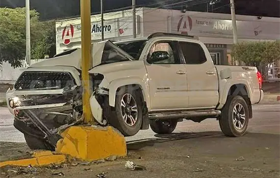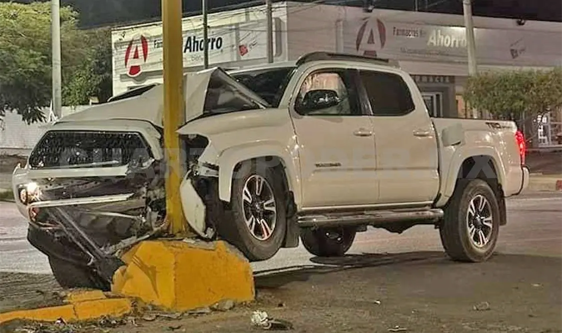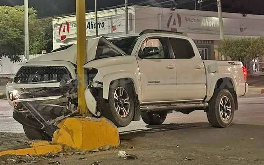 Un acelerado automovilista terminó estrellando su camioneta contra un poste de alumbrado público en el bulevar Laguitos y entrada al fraccionamiento Centenario.