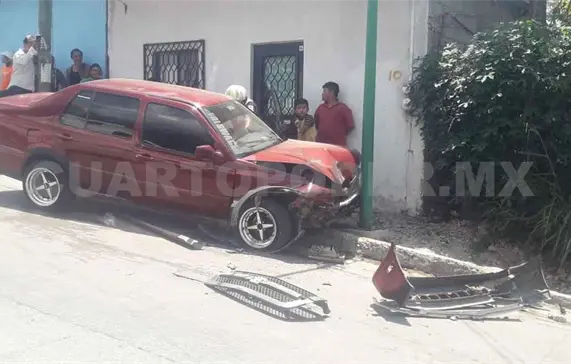 El automotor Volkswagen tipo Jetta terminó su acelerado paso a un costado de la baqueta tras impactar con la unidad de la empresa GasCom; como resultado del impacto, la mujer quedó aprisionada en el interior de la unidad.