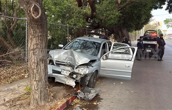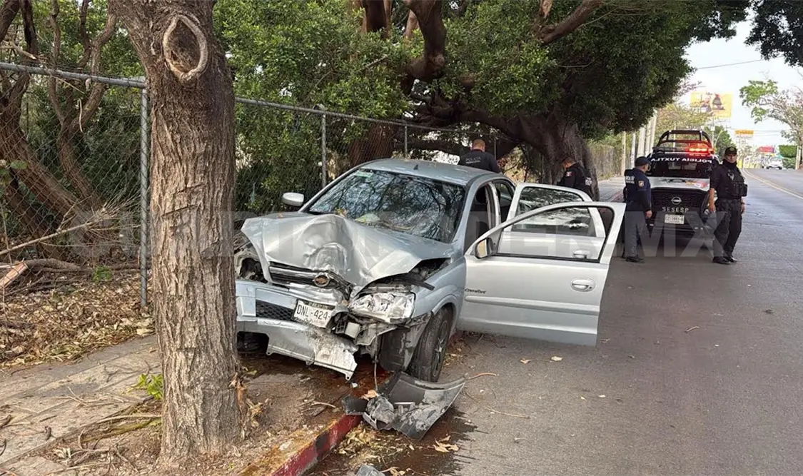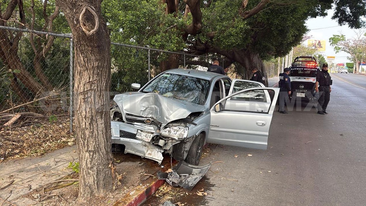Se estrella contra árbol tras chocar con taxi en 5.ª Norte