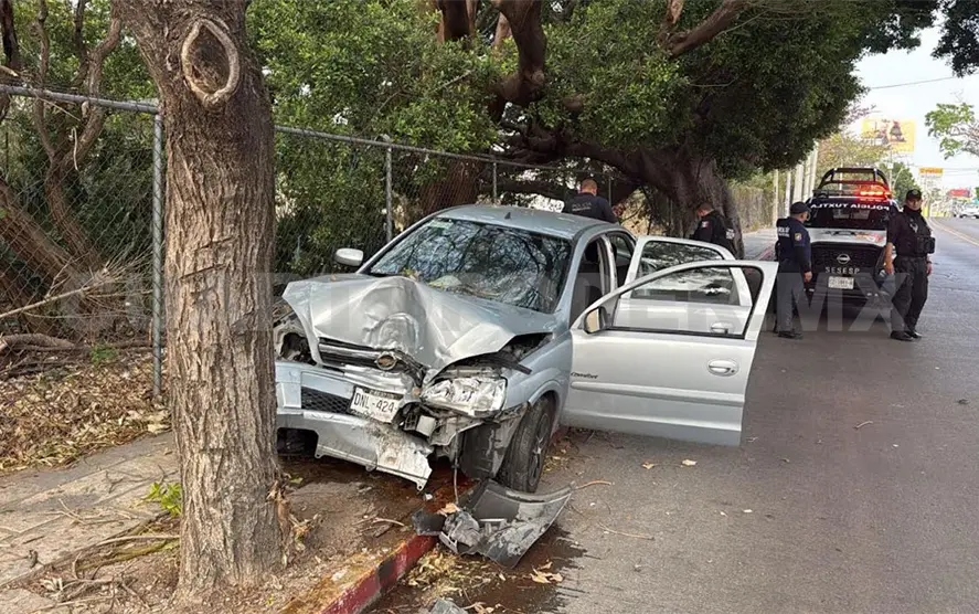 Al arribar localizaron a una persona lesionada, por lo que solicitaron el apoyo de unidades médicas. De acuerdo con reportes, el percance ocurrió cuando un vehículo particular color gris, marca Nissan, que circulaba de poniente a oriente sobre la 5.ª Norte, impactó por alcance a un taxi. Tras el choque, la unidad de transporte público se desplazó hacia adelante, mientras que el automóvil particular perdió el control y terminó impactándose contra un árbol.