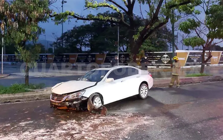 Sin embargo, el automovilista al desplazarse presuntamente a exceso de velocidad terminó perdiendo el control del volante y se estrelló contra un árbol situado en el camellón central.