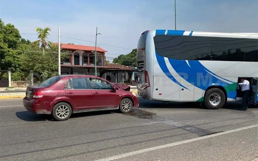 Esto originó que un automóvil de la marca Nissan tipo Sentra y con láminas de circulación del estado de Chiapas no lograra frenar a tiempo, terminando por estrellarse contra el costado del autobús.