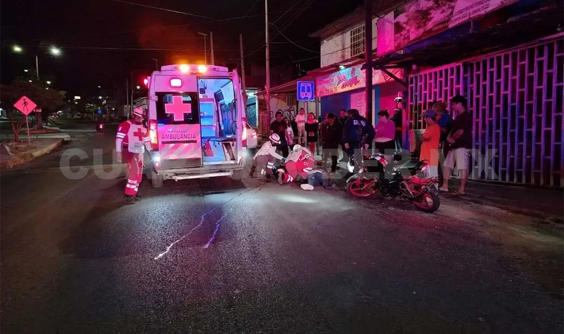 Con graves heridas terminó un joven motociclista luego de estrellarse contra un vehículo y posteriormente contra la fachada de una casa situada en la Calzada al Sumidero, entre las avenidas Costa Rica y Tuxtla de la colonia Agua Azul, en la capital Tuxtla Gutiérrez, durante la madrugada del lunes.