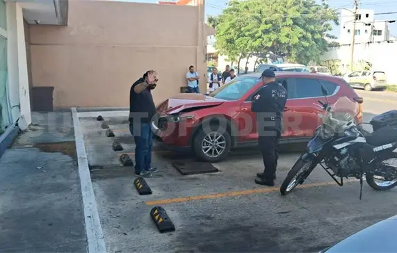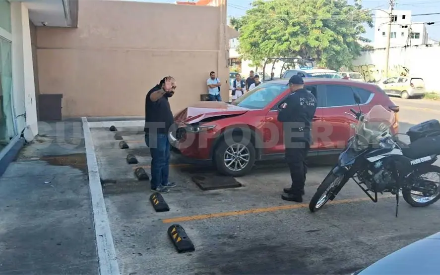 En el sitio del percance se informó que el conductor de una furgoneta en presunto estado de ebriedad, intentó estacionarse y en vez de frenar terminó acelerando, colisionando contra la fachada de una conocida farmacia.