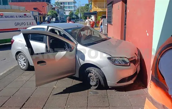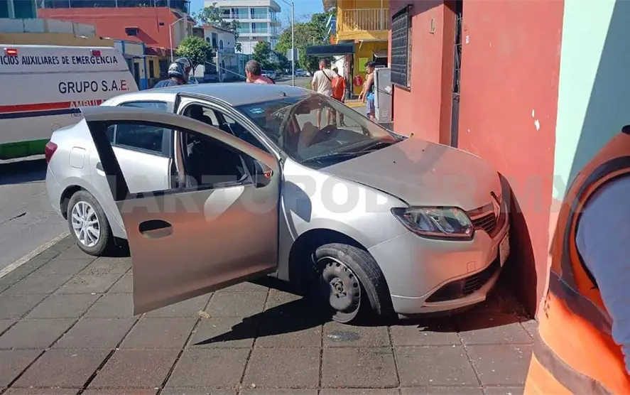 Un vehículo quedó impactado contra la fachada de una casa en la 9.ª avenida Norte y 15.ª calle Oriente, en el centro de Tapachula, luego de impactar contra otro vehículo. Paramédicos se presentaron para brindar el auxilio.