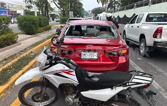 Esto provocó que se estrellara de lleno contra la parte trasera de un automóvil Mazda que circulaba delante de él. La fuerza del golpe hizo que el medallón quedara dañado y que el joven cayera al pavimento con diversas heridas.