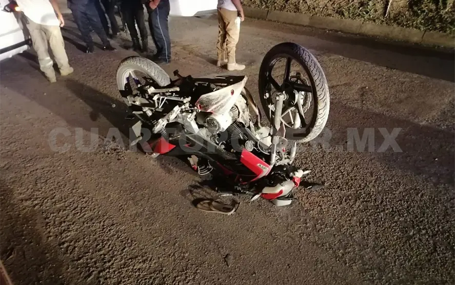 Paramédicos de la benemérita Cruz Roja Mexicana atendieron a una persona del sexo masculino, identificada como el conductor de la motocicleta, quien resultó con golpes contusos, lesiones abrasivas con sangrado y posibles fracturas.