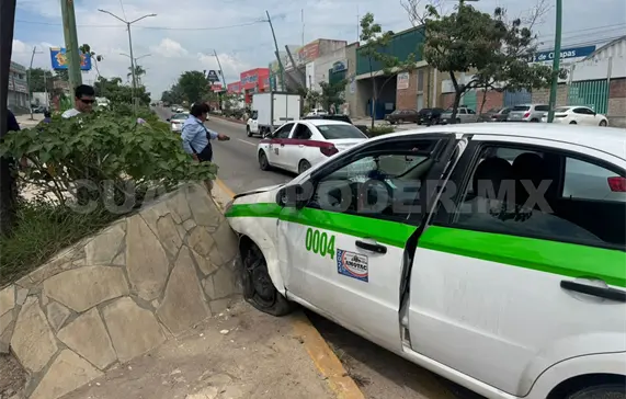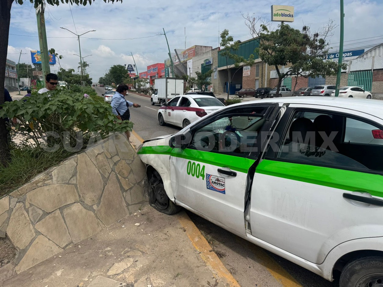 Con daños materiales considerables terminó un vehículo de transporte público en modalidad de taxi, luego de estrellarse contra las jardineras del andén central situado sobre la carretera Chiapa de Corzo-Tuxtla Gutiérrez, a la altura de la entrada a la colonia Satélite Loma Larga.