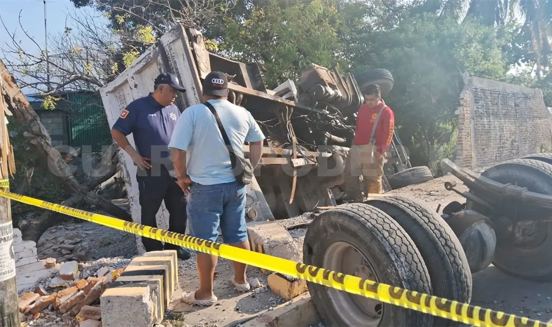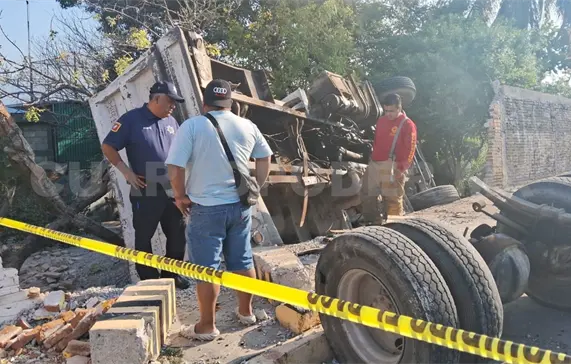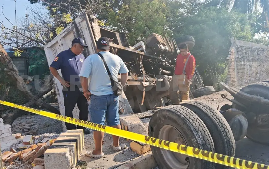 Una presunta falla mecánica originó que un volteo acabara estrellándose contra la barda de una casa en la colonia Santa María La Ribera, ubicada al sur oriente de la capital Tuxtla Gutiérrez, durante la mañana del martes.