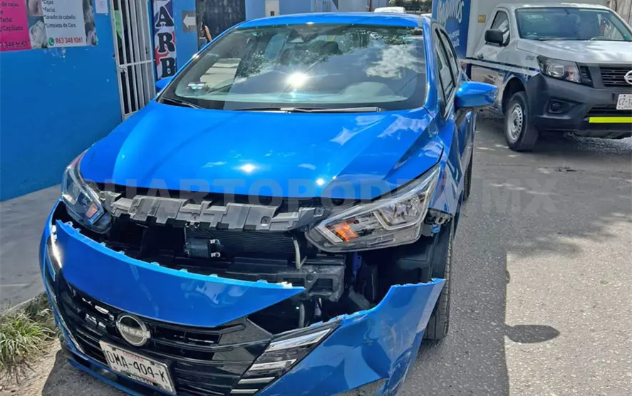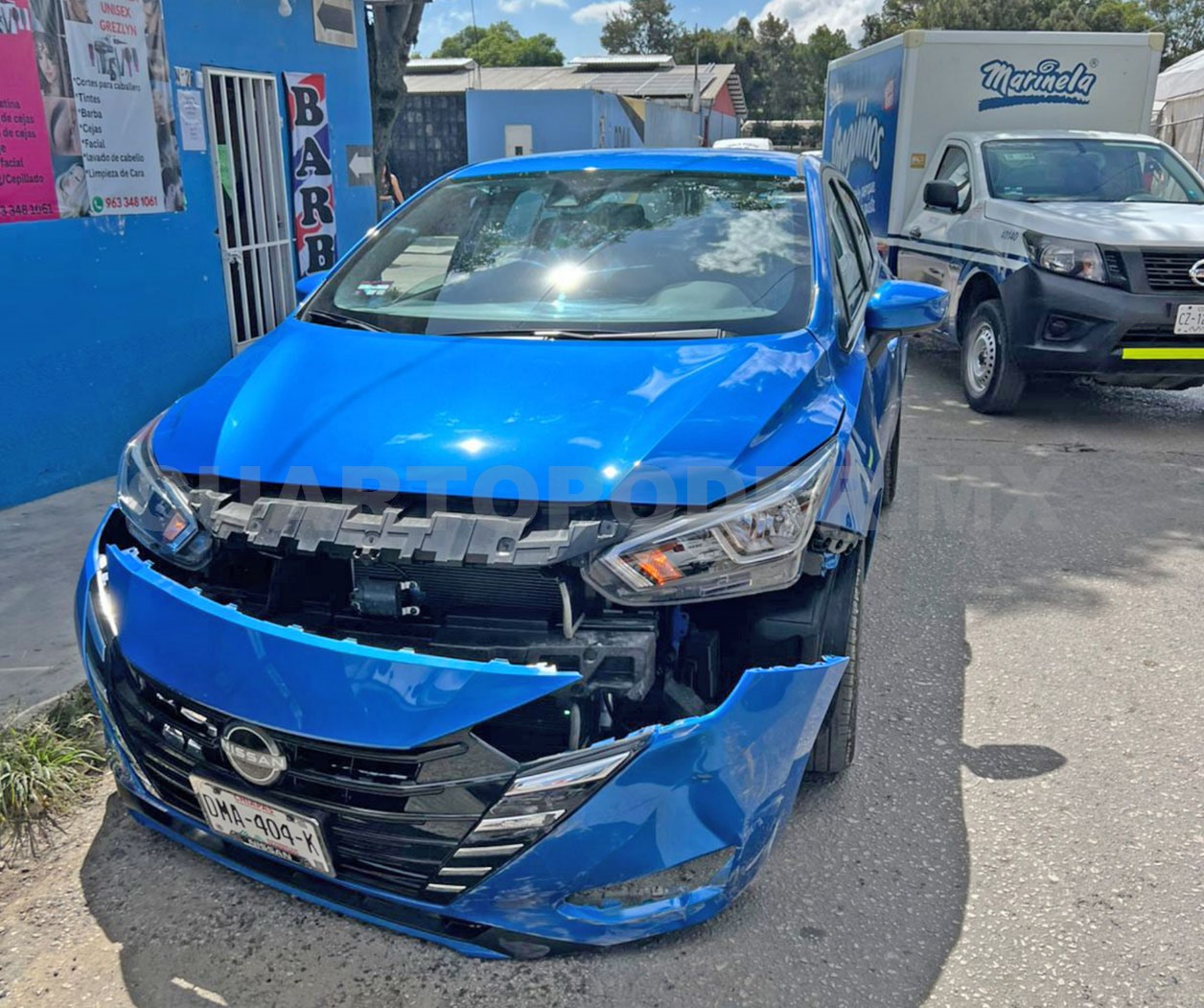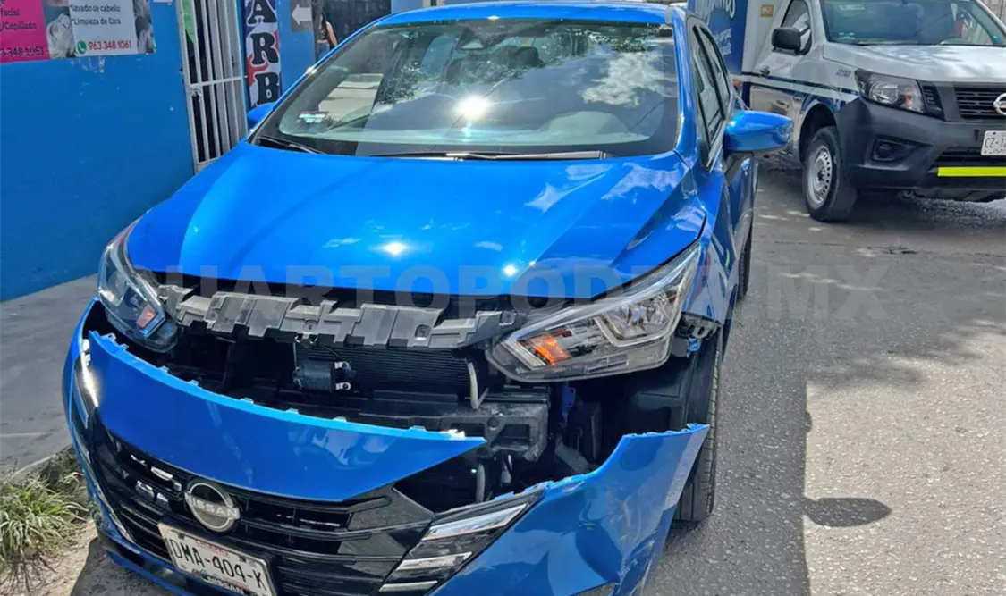 El impacto se registró cuando el conductor de un Nissan Versa de color azul, que transitaba sobre la calle rumbo al oriente trató de ganarle el paso a otro automovilista que se dirigía hacia el sur.